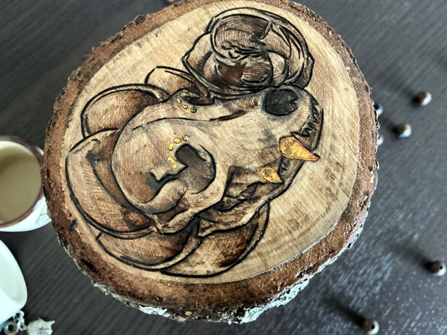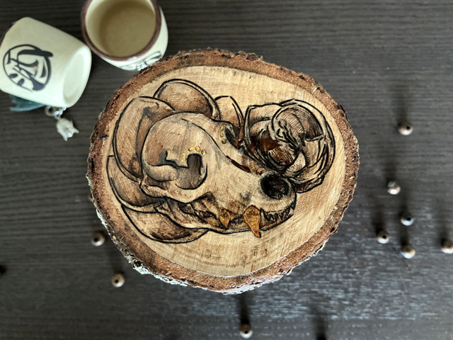 Loup et Pivoine - Pyrogravure - PIECE UNIQUE